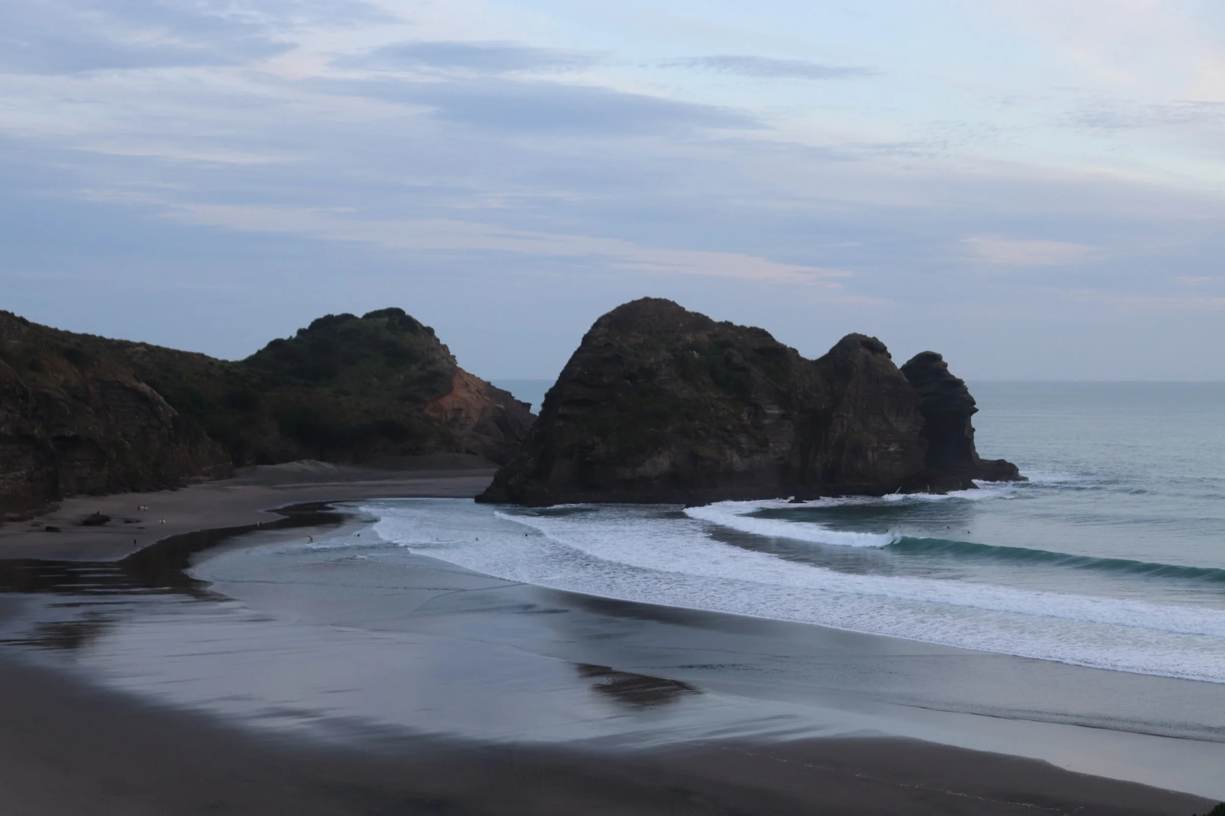 A black-sand coastline shaped by wild surf, shifting light, and the unmistakable presence of Lion Rock watching over it all. Rugged, dramatic, and deeply grounding - this is New Zealand in its rawest, most cinematic form.